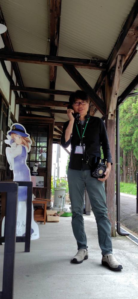 7月6日 2019年以来、6年振りに訪問、古き良き木造駅舎が前回同様大切に保存されていて感無量。願わくば永遠に保存されてほしいなぁ。 7月6日 約2年ぶりの訪問。どこの路線でも古い駅舎、特に木造駅舎をいつまでも残して欲しい。施設維持に尽力されているすべての皆様に感謝(福島県 水野) 追伸:米屋さんは今いずこ?  【おらだの会】地域おこし協力隊の米屋さんは、週一ペースで羽前成田駅においでになり、駅のそうじや電話での応対に忙しく勤務されております。なお米屋さんは以前から黒電話の携帯がお好きなようです(笑)。写真はNanaさん提供。 → 米屋先生の熱血授業 その2:おらだの会