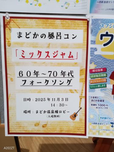 この3日間風邪ひいてダウン、何もする気が起きずにいまして、ようやく回復しました・・今日からいつもの生活リズムに戻ります・・さてHPも:7,8とお休みしてましたが再開です・・中身は11月3日の告知です。川西町の温泉施設『まどか』温泉棟のロビーでおこなわれる不定期コンサート・・ジャンル自由、参加費もとられず入場料もなし・・まどか社長の考案で始まった、ものです。プロの方のコンサートも食事付きで宿泊棟ロビーで行ったりと音楽好き社長が音楽を愛する人に楽しんでもらおうと・・そんな場所を提供してくれてます、まどかの近くにライブハウス『Jam』も所有しています。そんな風呂コン、2018年、2019年、2023年、2024年と出さしてもらいました、今年も11月3日ダリア園の最終日・・ダリア園入場は無料でダリアの摘み取りが500円で10本できるということで、お気に入りの日、10本でなかなかごうかなもんですよね、この日霜でダリアがだめになってしまうこともあり摘み取りは直前でないとあるかわかりませんが・・・3日は早朝から摘み取りして食事して、温泉入って、風呂コン準備して14時半から開始します・・なんか楽しみな一日です