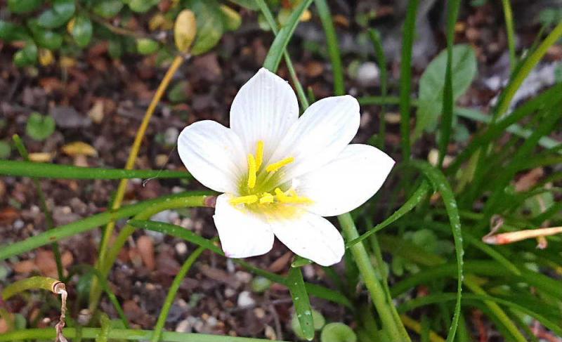 ●細長い葉が地面から直接出ていて 一本の茎に一つだけ花を付けている「タマスダレ」がとある家の軒先に咲いていました 小さな花を玉に見立て 細い葉が集まっている様子が簾(スダレ)に例え「タマスダレ」と呼ばれているそうです 種はほとんど作らず球根の分球でふえていく草花だそうです 秋にひそやかに咲く可憐な花の一つでしょうか
